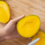 First things first: cut it in half lengthwise. Then, scoop out the seeds.